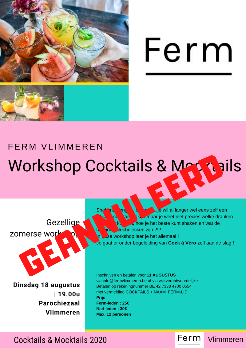 Workshop Cocktails & Mocktails - 18 augustus 2020 en 25 september